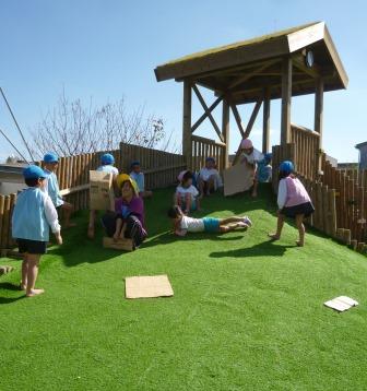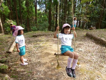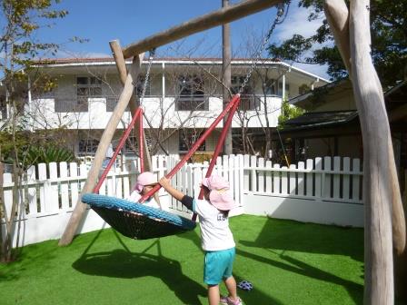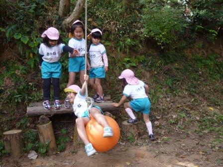 先日、5歳児さんは、あがた幼稚園の園バスに乗って、「冒険の森」に遊びに行きました。目の前に広がる森に中のアスレチックやブランコ、木のベンチに目をキラキラさせて思いきり遊びました。人気NO.1は”そり遊び”初めは怖がっていた子も、遊ぶにつれて、その楽しさに引き込まれ、笑顔いっぱいで夢中に遊んでいました。あがた幼稚園のお友達との交流もあり、一緒にたくさん遊べましたね!