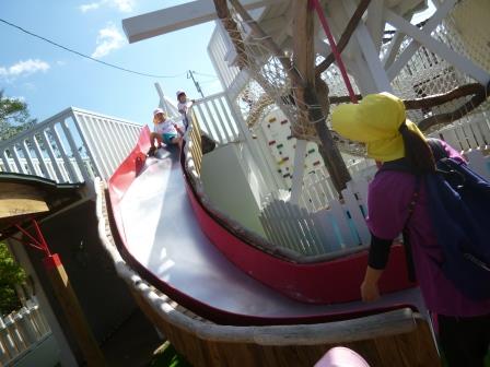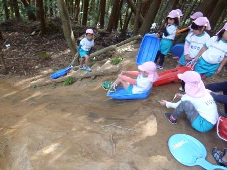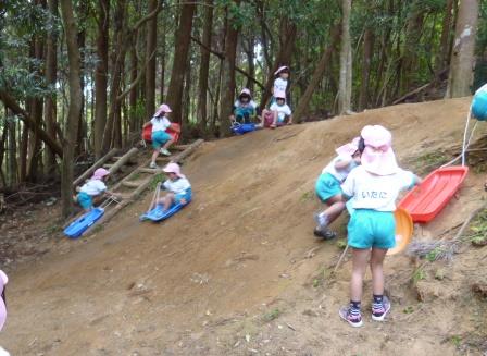 山を下りたら、幼稚園の菜園のびのびハイランドの草スキーや新しくできたユートピア館でも遊ぶことができ、大満足でした(*^_^*)