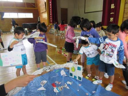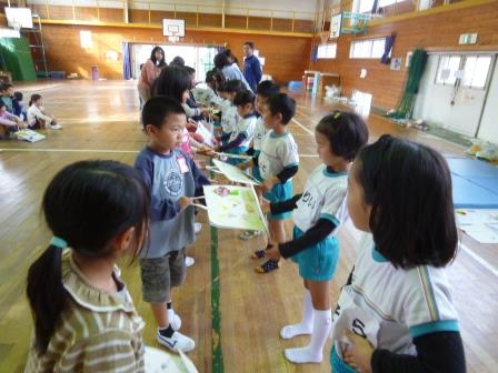 楽しかった☆秋パーク☆【四季の森】 投稿日:2016年1月19日 作成者: 森と風の郷 教諭 楽しみにしていた小学校の「秋パーク」。1・2年生と一緒にゲームをしたり、お店屋さんごっこやボーリング・円盤投げ・けん玉など手作りのコーナーがたくさんありました。お世話係のお兄さん、お姉さんと手をつなぎ笑顔いっぱいの子どもたちは、小学校への憧れが一層強くなったようでした。