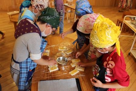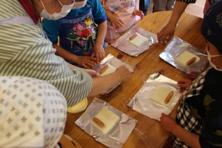 最後は、おやつでも大人気のウインナーロール。ウインナーをパンでクルクルっと巻いて、さらにホイルで巻いてランチ室へ。