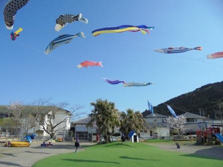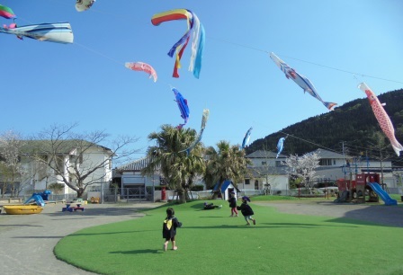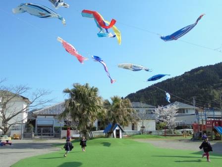 【かつおのぼり】元気だよ!【にじ色の海】 投稿日:2017年5月22日 作成者: 森と風の郷 教諭 5月が近づくと、あちらこちらで鯉のぼりが気持ちよさそうに泳ぎ始めますね。 にじ色の海こども園では、ご当地ならではの【かつおのぼり】を園庭に揚げます。今年も鯉のぼりと一緒に楽しそうに泳いでいました。 軒下には、小さな【カツオ】がたくさん泳ぎ、子どもたちが見あげて楽しんでいました。 また来年、大空で泳いでくれることでしょう!ぜひ見に来られて下さい!