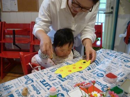 ニコニコ✬ふれあい参観【にじ色の海】 投稿日:2017年5月23日 作成者: 森と風の郷 教諭 0・1歳児の保育参加を行いました。 年度初めての保育参加で、触れ合い遊びや鯉のぼり作りを行いました。 触れ合い遊びでは、肌のぬくもりを感じながら、保護者も子どももニコニコ笑顔でしたね(*^_^*)お家でもできる簡単な触れ合い遊びでしたが、この時期の子どもたちにはとっても大事な時間ですので、たくさん向き合ってほしいと思います。 触れ合い遊びの後は、スタンピングの鯉のぼり作り。ペタペタ色がつく面白さを味わっていたようです。 色画用紙で作った兜をちょこんとかぶって・・・ハイ、チーズ!