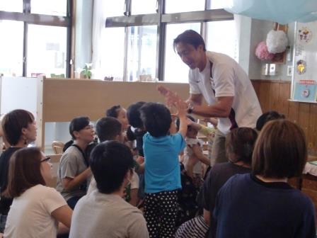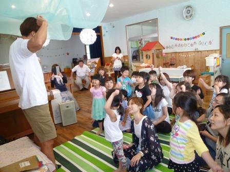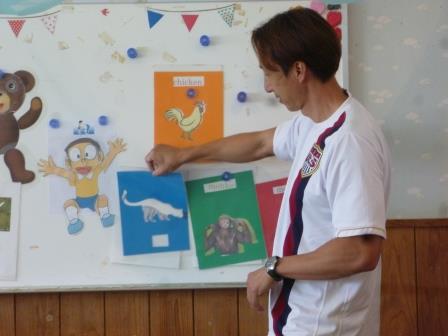 英語で遊ぼう!【3歳児保育参加:にじ色の海】 投稿日:2017年6月14日 作成者: 森と風の郷 教諭 にじ色の海こども園では、月に2回ルーク先生の「英語で遊ぼう!」の時間を設け、英語に親しんでいます。 今回は、3歳児の保護者の方も一緒に参加していただき、保育参加をおこないました。 先生の質問に英語で答える3歳児さん。発音や反応の良さと、家では見られない子どもの一面をみて、お母さん方もびっくりされていました。あいさつはもちろん、体の部分の名前や動物などの単語を、小さな体でしっかり覚えていくのでしょう。面白く魅力のある英会話の時間はあっという間でした。