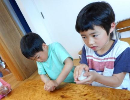 3時のおやつ・・・自分でおにぎりをギュッ、ギュッと握ってパクリ!