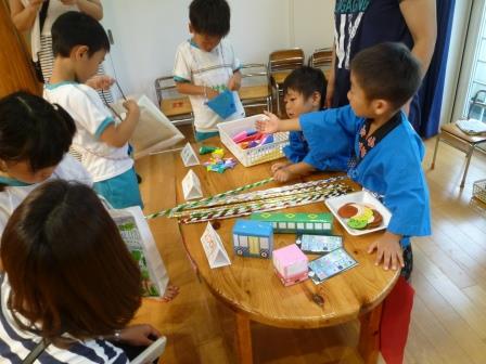 品物作り、引換券やお金作り、看板作り、品物設置・・・と、5歳児さんを中心に進めてきました。