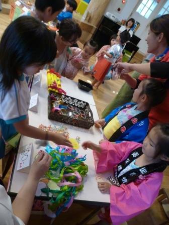 甚平を着た愛らしい姿で先生達とお買い物をする小さなお友だち。。。