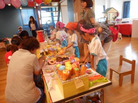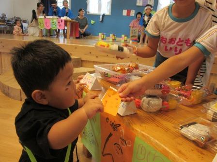 売り場は、5歳児・4歳児さんの「いらっしゃいませ~」と威勢の良い声が響き渡り、なかなか思うように売れないお店の子は、品物を移動販売するなど、例年にない子ども達の工夫がみられ、嬉しく思ったところです(*^_^*)
