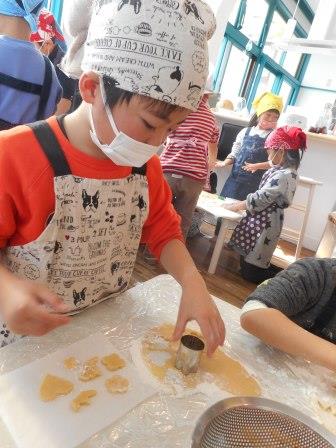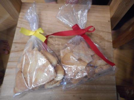 出来上がったクッキーを「お母さんにプレゼント!」「お家でお姉ちゃん達と一緒に食べるんだよ!」と、ラッピングしながらウキウキしている姿。