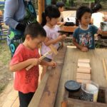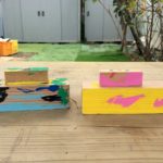 木育の「木」にちなんで毎週「木曜日」に年長児さんが午後の時間を利用して木育活動を開始しました。「木工教室」第1回目はのこぎり・金(木)づち・きりを使用し、舟を作成しました。金づちは、面白く「トントン、トントン♪」とリズムよく釘を打ち込んでいました。「家でもするよ」「おじいちゃんとしたことあるよ!」という普段の子どもたちの様子が伺えたことも大事な収穫となりました。第2回目は「鉛筆立て」作りに挑戦しました。木の幅が小さいので釘を打つ作業に集中する子どもたち。子どもたちは木育活動にとても積極的で木工教室を楽しみにしています。今は、金づちやのこぎりの使い方を教わりながら、製作する楽しさを味わっています。真心こめて作った作品を、とても大切に飾っています。自分の物を大切にする気持ちが育まれ、そこから「物を大切にする心」が育っていくと嬉しいです。