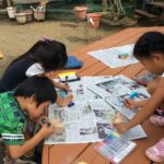 園庭の木々が赤や黄色に染まってきました。風も随分と涼しくなり子どもたちは、ひなたぼっこをしたり、園庭に落ちている枯れ葉をお花に見立てたりして秋の雰囲気を楽しんでいます。年中児さんは発表会に向け、園庭の木々の特徴から名前を調べています。また先日、年長児さんのお友だちが今夏咲いたヒマワリの種を数えてくれました。ひとつひとつテープで貼りながら数えていきました。その結果676個の種を採取することができました。最近、数字に興味を持つようになった年長児さんです。小さいお友だちは園庭に咲いていたアサガオから種取りをしてくれました。園庭の木々や、お散歩の途中で見つける小さな季節の変化に興味を示す子どもたちです。