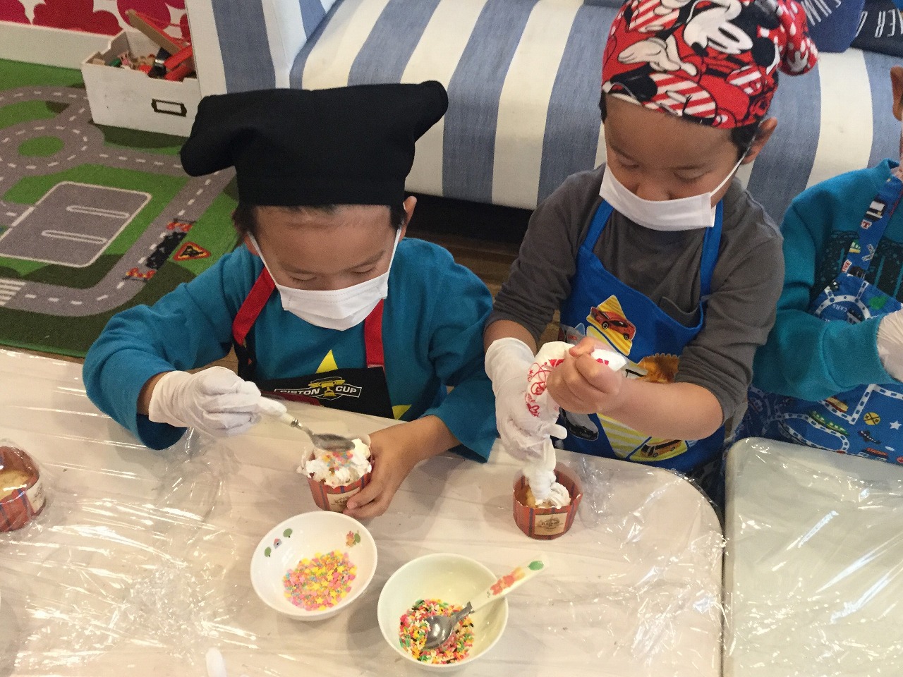 5歳児さん(かもめ組)のクッキング🍴園で準備した、にんじん、白菜、大根、かぶ、山東菜、水菜、小松菜、里芋の8種類の野菜を、冷たいお水できれいに洗ってくれました。