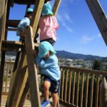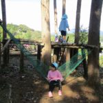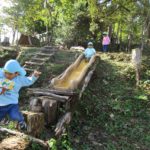 冒険の森へあがると、日南市街が眼下に広がり、「ヤッホー、ヤッホー」と連呼していた子どもたち。タイヤのブランコやそり滑り、丸太わたりなど、木製の手作りアスレティックで思い思いに遊びました。興奮マックスの子どもたちで、園までのバスの中では、眠りにつく子もいました。森の中で遊ぶ活動は無限大です。五感をフル活用して楽しんでいきたいと思います。