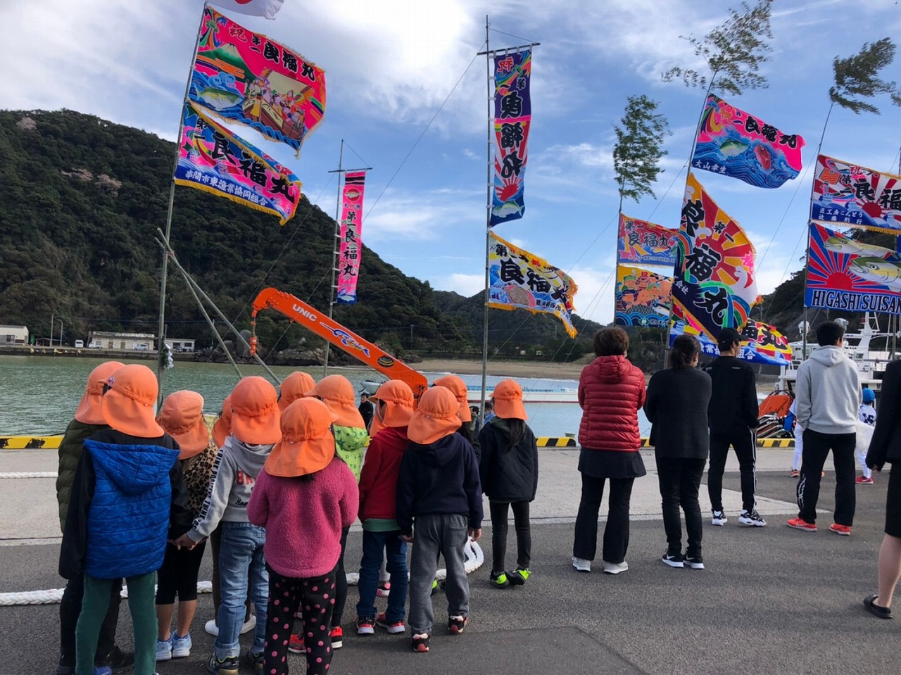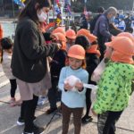 5歳児さんが、東水産さんの新しい船のもちまきに参加してきました。神事を見届けた後、たくさんのお餅やお菓子に夢中の子どもたち。持って行った袋にいっぱい詰め込んで、ニコニコ笑顔で帰って来ました。