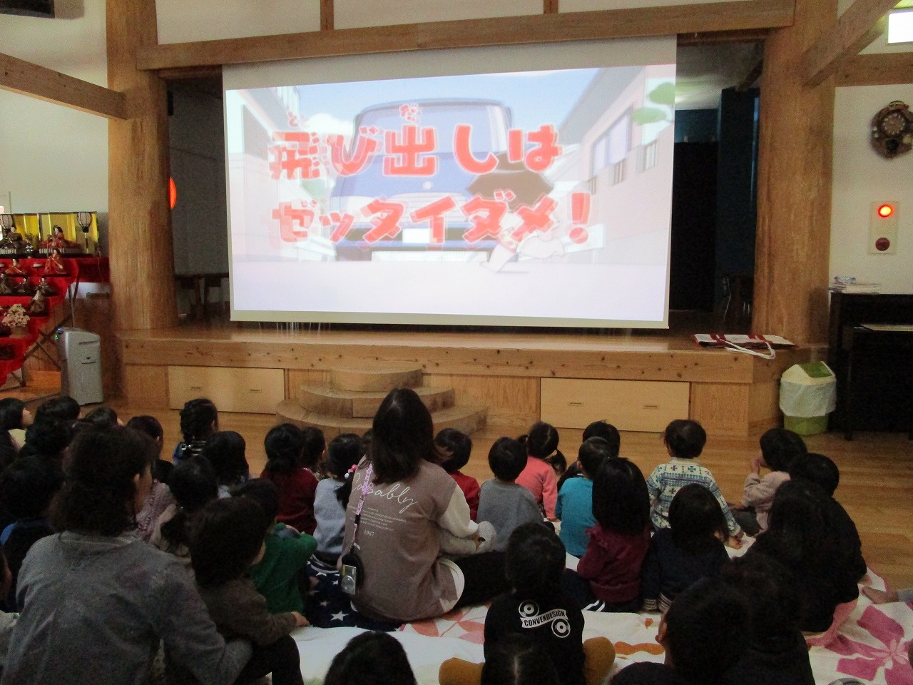 先日、今年度最後の交通指導員の方による交通安全教室を行いました。今回は紙芝居とDVDを見ながら、交通について学びました。「こんな時はどうしたらいい?」の問いかけに子どもたちはしっかり考えて答えることができました。