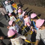 交通の3つのお約束『信号を守ります!飛び出しはしません!道路では遊びません!』も再確認。園外でのお散歩でも守るように気を付けたいと思います。